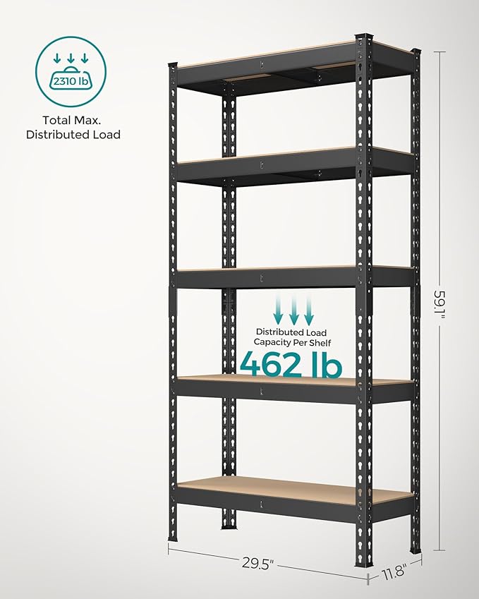 - [Stable and High Load Capacity] The sturdy steel frame and thick MDF panels of this set of two 5-tier shelving units offer a maximum weight capacity of 462 lb per shelf, while reinforced crossbeams provide extra stability