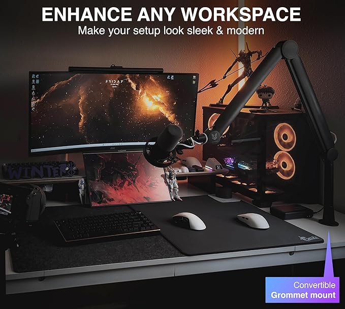 - 🎤【 Intelligent Stabilization 】You don't have to keep changing the angle of your microphone thanks to the stabilization of the boom arm. The microphone will always keep its angle, even when you move the boom arm.
