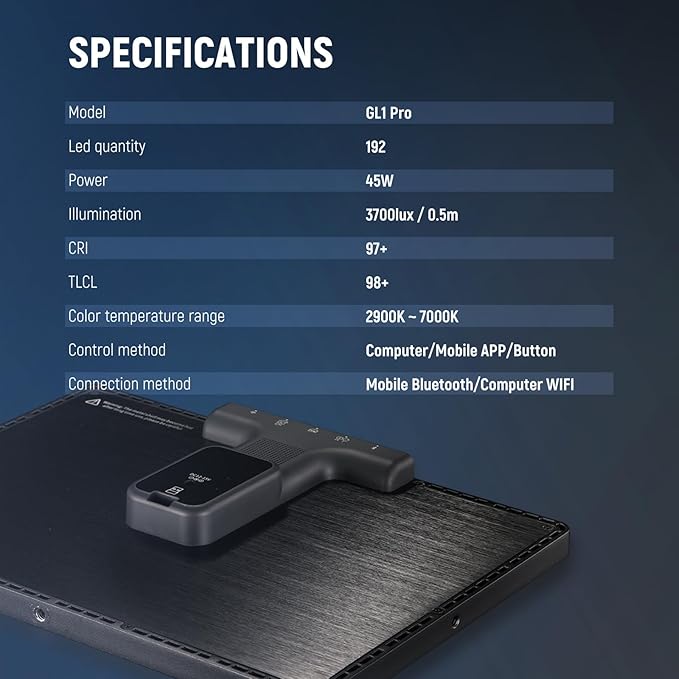 - 【Silent Fanless Design & Desk Clamp Stand】 The casing is made from aluminum with excellent thermal conductivity, ensuring effective heat dissipation without a noisy fan. Enhances your immersive gaming experience without interfering with sound recording. The lighting accessories kit includes a desktop stand for desks 0.4"-3" (0.9-7.5cm) thick with height adjustment from 13.8" to 23.6" (35 to 60cm). Use GL1 as a key light to stream or overhead fill light for YouTube video recording, photography