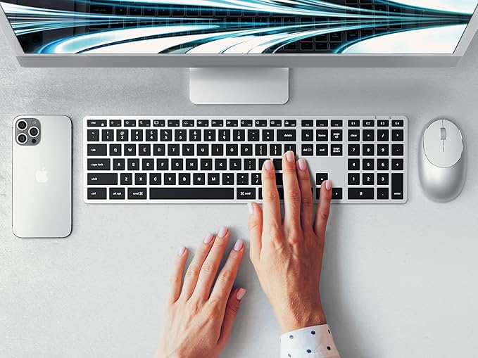 Satechi Slim X3 Bluetooth Backlit Keyboard for Mac, Illuminated Keys & Multi-Device Sync, for MacBook Air/Pro M4, iPad Air/Pro M4/M3, iPad mini, Mac mini, iMac - Silver