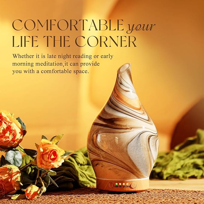 - UNIQUE ART DECORATIVE DESIGN - Our 150ml glass essential oil diffuser has an elegant starry pattern glass cover and wood grain decorative base. It is very suitable for your bedroom, living room, children's room, study room, office, and yoga room.