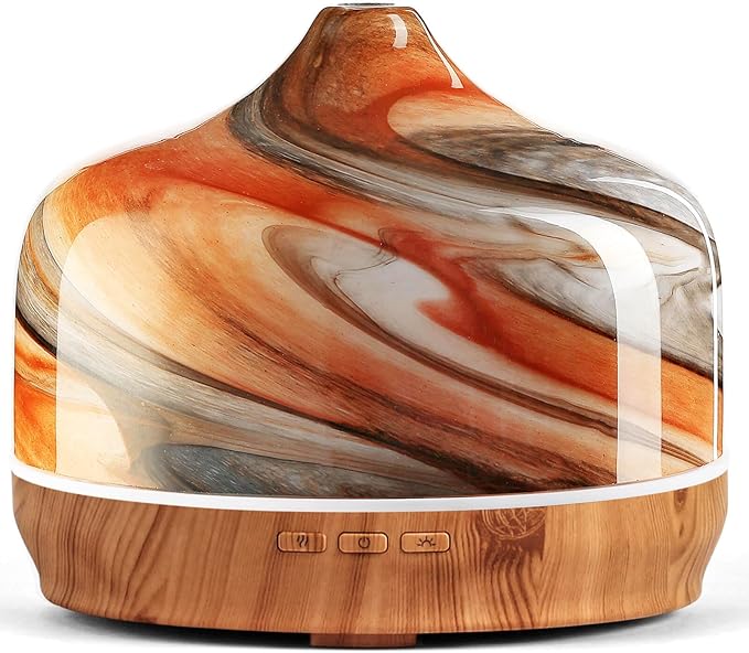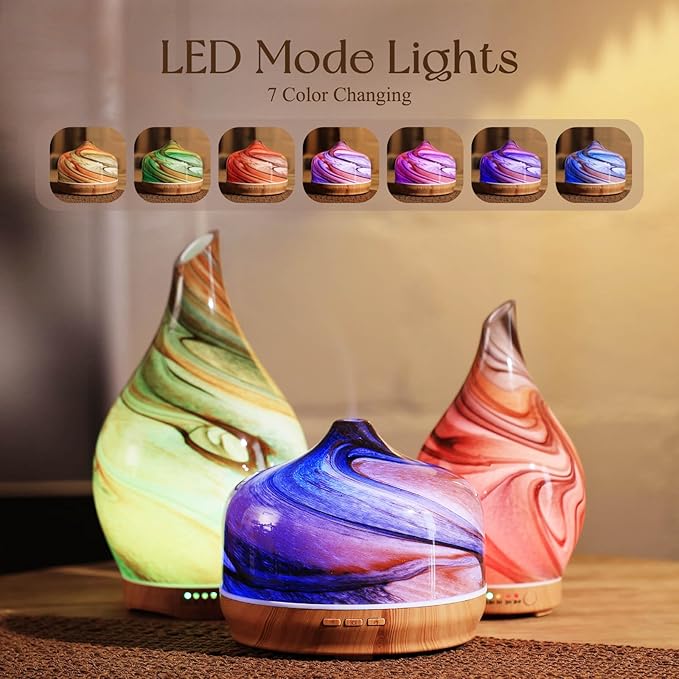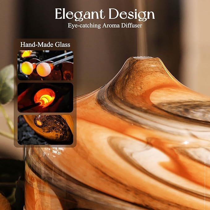- UNIQUE ART DECORATIVE DESIGN - Our 500ml glass essential oil diffuser has an elegant starry pattern glass cover and wood grain decorative base. It is very suitable for your bedroom, living room, children's room, study room, office and yoga room.