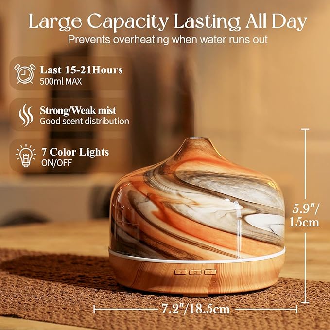 - CREATIVE AND PRACTICAL GIFT IDEA - Our 500ml large capacity diffuser is a wonderful gift choice for birthdays, anniversaries, mother's Day, Valentine’s Day, weddings, graduation, Thanksgiving, Christmas to families, friends, teachers, lovers, and colleagues.