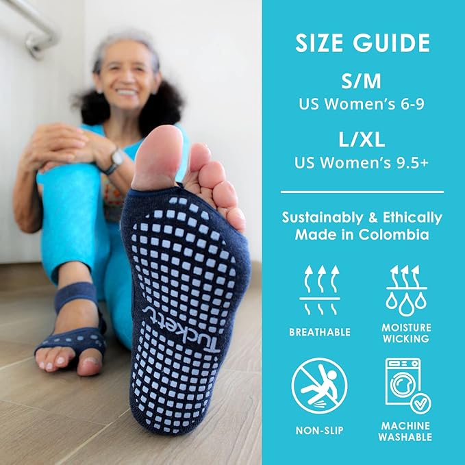- Committed to the Planet: We're dedicated to protecting the planet with tree-free packaging, water-conservation, recycled yarns, and mindful approach to manufacturing for our yoga socks with grips