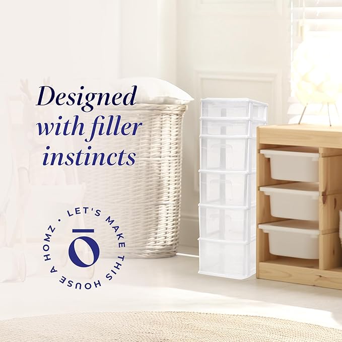 HOMZ 2-Pack Drawer Tower, 6-Tier Clear Plastic Storage Organizer Unit, White Frame - Multi-Purpose Container Drawers for Bedroom, Bathroom, and Office Organization