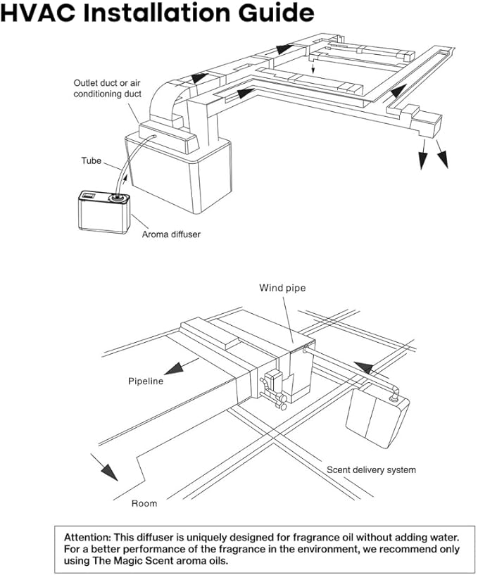 - TURNS INTO AN HVAC SCENT DIFFUSER - Outstanding as standalone or wall-mounted units, TMS diffusers for home also fit your new or preexisting HVAC system for even better scent dispersal in larger spaces. The diffuser comes with a pre-attached nozzle for stand-alone use. To connect to an HVAC system, replace the nozzle with the included HVAC nozzle and attach the pipe. *Not suitable for large commercial spaces or mini-splits.
