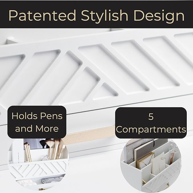 BLU MONACO White Wooden Mail Organizer with Drawer and Gold Handle – Desk Accessories for Office Organization and Storage – Home, Office, and Classroom Supplies