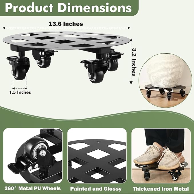 - Multiple-Use: The plant dolly with wheels can be used in the home, parlor, balcony, courtyard, and garden to move large, heavy plants easily from indoors to outdoors. They can be used to roll garden pots, large potted trees, heavy vases, whiskey barrels, and even heavy trash can. Discover more benefits by taking them home with you!