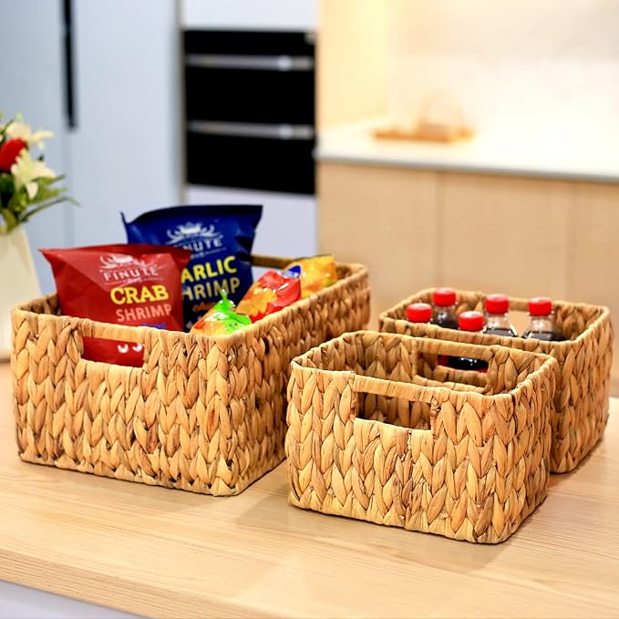 - Friendly to Furniture: these pantry baskets are made of soft water hyacinth material, and they don't scratch your shelves or other furniture.