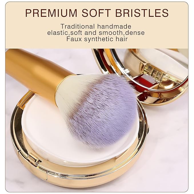 - CRUELTY-FREE SYNTHETIC FIBER BRISTLES: Soft synthetic bristles, high-quality aluminum ferrules, and wooden handles, easy to hold and control while applying makeup. The bristles are rich, soft and fluffy, and will not fall off easily. They can better grasp the powder and spread evenly on the face, which not only makes your makeup more natural, but also gentle and non-irritating to the skin.