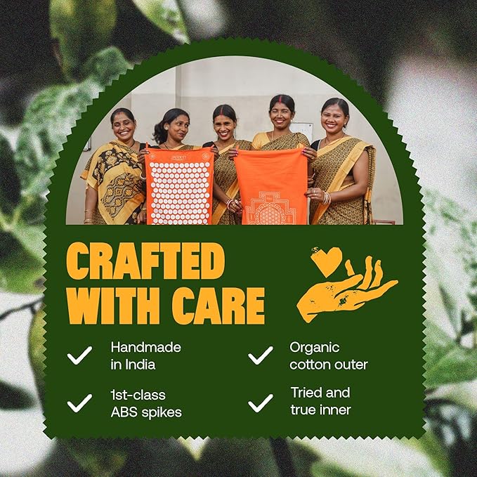 - QUALITY MATERIALS: Ethically handmade with certified organic cotton, 1st-class ABS spikes and organic Blissfoam for a sinking sensation that feels better than a back massage.