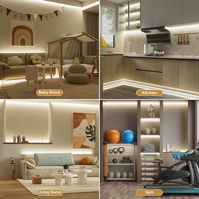 - UL Listed, Safe and Durable: The working voltage of the strip light is 24V low voltage, very safe to touch! They are UL listed and made of lead-free materials, reliable quality and harmless to human health. With double-layer pure copper PCB board, the strip light has better conductivity and heat dissipation and is not even easy to crack, with a service life of more than 65,000 hours! The color rendering index is as high as 93+, and the color reproduction is more realistic!