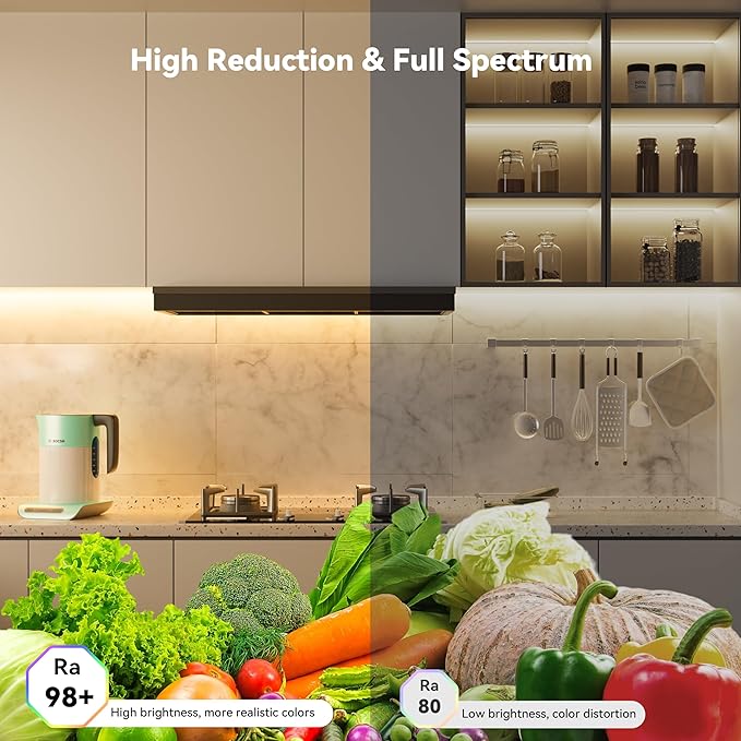 - UL Listed, Safe and Durable: The working voltage of the strip light is 24V low voltage, very safe to touch! They are UL listed and made of lead-free materials, reliable quality and harmless to human health. With double-layer pure copper PCB board, the strip light has better conductivity and heat dissipation and is not even easy to crack, with a service life of more than 65,000 hours! The color rendering index is as high as 93+, and the color reproduction is more realistic!