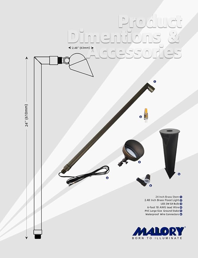 - OPTIMAL ILLUMINATION:Adjustable cast brass knuckle with thumb screw path light looks beautiful yet unobtrusive in any landscape. 2.4" flood light supports a vertical rotation of 180 degrees, 24" high stem for this path light, can projects a 15-foot diameter region of illumination. Ceramic white paint underneath shade for increased ground illumination.