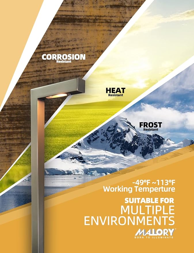 - BRASS PATH LIGHT: The stem and light cap for this path light is constructed of die-cast brass for durability and beauty. IP65 waterproof rating and -49℉⁓113℉ working temperture,suitable for any outdoor environment use,without worrying about rain, snow, frost, high temperature, and other bad weather.