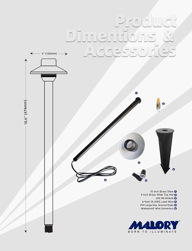 MALORY Low Voltage Pathway Light 1 Pack, (18.6'' H) 12V Brass Landscape Path Light,Outdoor Walkway Lighting with 2W 2700K LED G4 Bulb for Pathway Driveway Patio Yard & Lawn(P05 Mini Shade,1-Pack)