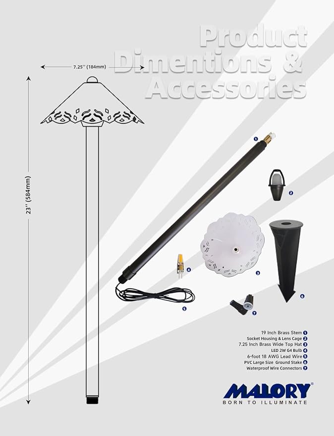 - OPTIMAL ILLUMINATION:Our LED path light with a classic hat looks beautiful yet unobtrusive in any landscape. This path light with 7.25" large shade and 23" high after install, can projects a 6-foot diameter region of illumination, 360° downward light without any glare. Ceramic white paint underneath shade for increased ground illumination.