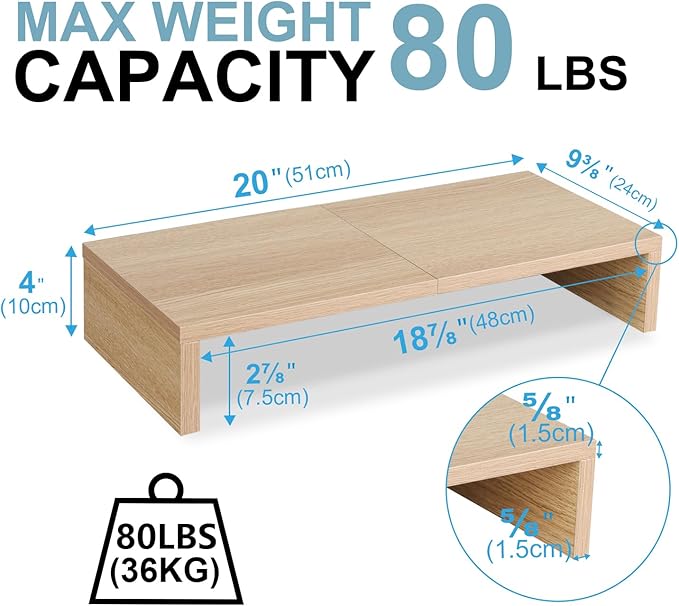 TEAMIX 2 Pack Monitor Stand Riser-20 inch, Wooden Desktop Riser for TV/PC/Laptop/Printer, Cozy Monitor Riser with Storage, Computer Stand Space-Saving