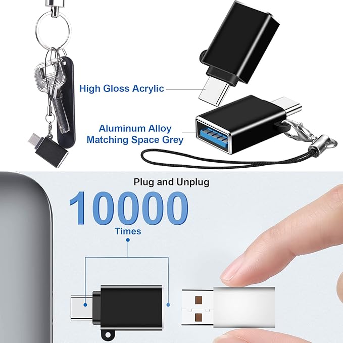 - 【Wide Compatibility】:Type C to USB adapter is compatible with type C/Thunderbolt 3 laptops/tablets/OTG phones such as iPhone 15 Pro Max/ MacBook Pro/Air 2023,iPad Pro 2021/2020, Galaxy S22/S21/S20. USB A to C adapter specially compatible with charger cables for iPhone 15 14 13 12 Mini Pro Max, AirPods Pro 2 3, Samsung Galaxy S23 S24,A53 A54, iPad Pro 2022/2021,Apple Watch iWatch Series SE,7 8 9 Ultra and more.