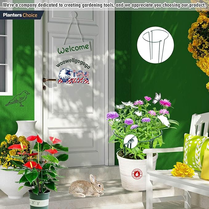 - Natural Green Round Plant Support Cages: These sleek and glossy half-round metal supports blend seamlessly with your plants, providing improved firmness and protection. The interlocked design allows them to naturally interlink for even greater support. Plus, plant support stake is incredibly easy to install, pushing the plant stake into the earth, making them the perfect choice for both novice and experienced gardeners. Give your plants the care they deserve with our Plant Support Cages.