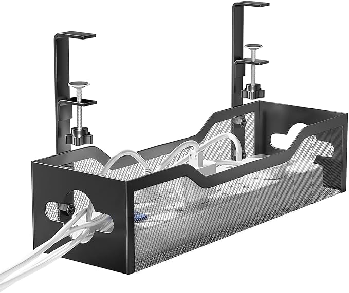 - ELEGANT UNDER DESK CORD ORGANIZER 1 Pack - The design of the mesh cable management frame is more beautiful and generous than that of pure iron wire products, and there is no problem putting small items in it. The design of cable management holes on both sides can help you manage cables more easily.