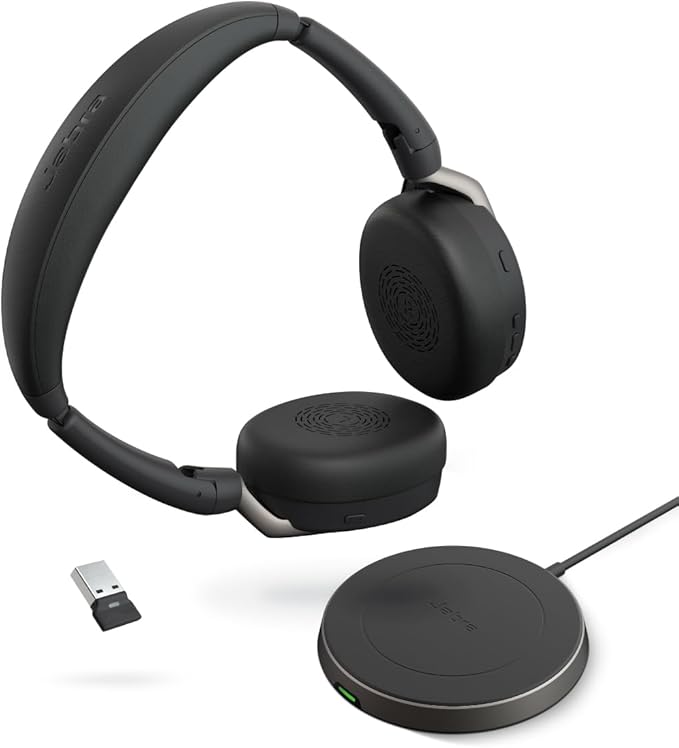 Jabra Evolve2 65 Flex Stereo Headset with Bluetooth, Wireless Charging Pad - Noise-Cancelling ClearVoice Technology & Hybrid Active Noise Cancellation - Works with Leading UC Platforms - Black