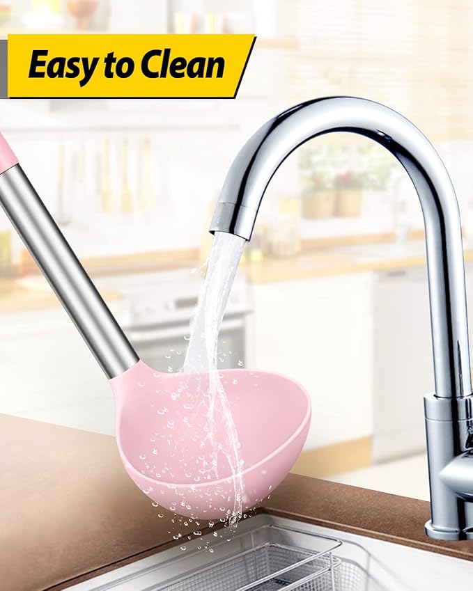 - More Safe and Healthy : Our kitchen ladle spoons are made of food-grade silicone, free of BPA;Even at high temperatures, there is no need to worry about melting or deforming;And the soft silicone head won't scratch the coating, it can better protect your pot