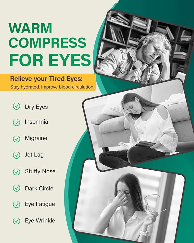 - 【20-30 Mins Dry Eye Relief】Our steam eye masks can relieve your eye fatigue, moisturize your eyes, improve your sleep quality, reduce dry puffy eyes and dark circles. The heated eye mask will promote your blood circulation, release fine moist steam, comfort the skin around eyes, let tired eye enjoy the steam, fully relieve dry eyes and eye astringent with just 30-minute eye spa.