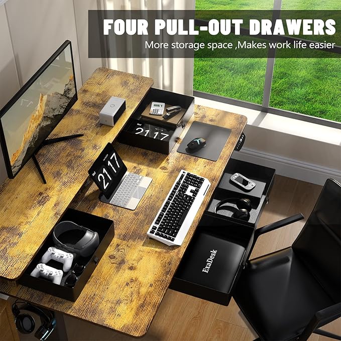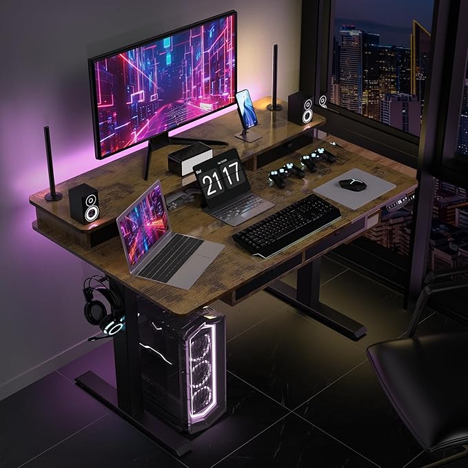 48 * 30 Inches Electric Standing Widened Desk Adjustable Height with 4 Drawers, Double Storage Shelves Stand Up Desk, Home Office Workstation Sit Stand up Desk (Rustic Brown)