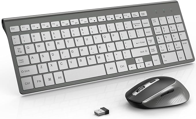 Wireless Keyboard and Mouse, J JOYACCESS Slim and Ergonomic Wireless Keyboard and Mouse Combo,Portable and Comfortable Typing for Laptop/Computer/Desktop/PC-Grey/Silver