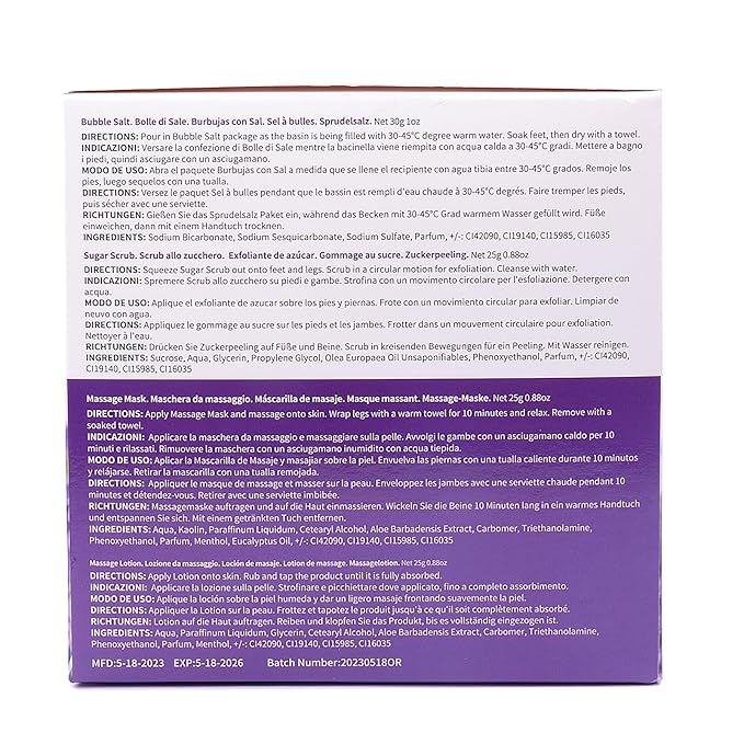 - 🍃At Home Pedicure Foot Soak: Our pedicure foot spa include bubble salt, sugar scrub, massage mask and massage lotion, 4 step foot soak will give you a relaxing experience for your tired achy feet.