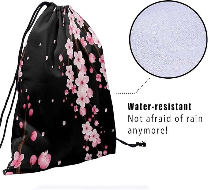 - 【MULTI FUNCTION】 The Asian Japanese flowers drawstring bag is the perfect complement to your home, travel or fitness equipment series and the best choice for any indoor or outdoor activity. It can be used as a storage bag for handbags, small gymnastics bags or daily clothes or shoes. Perfect as a gift for birthday parties, handicraft activities, Halloween, Christmas, camping and other outdoor activities.