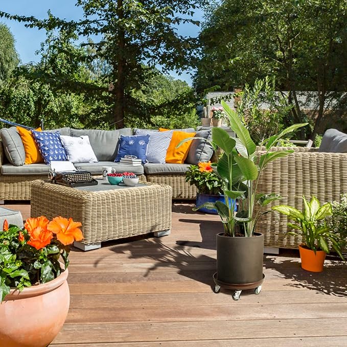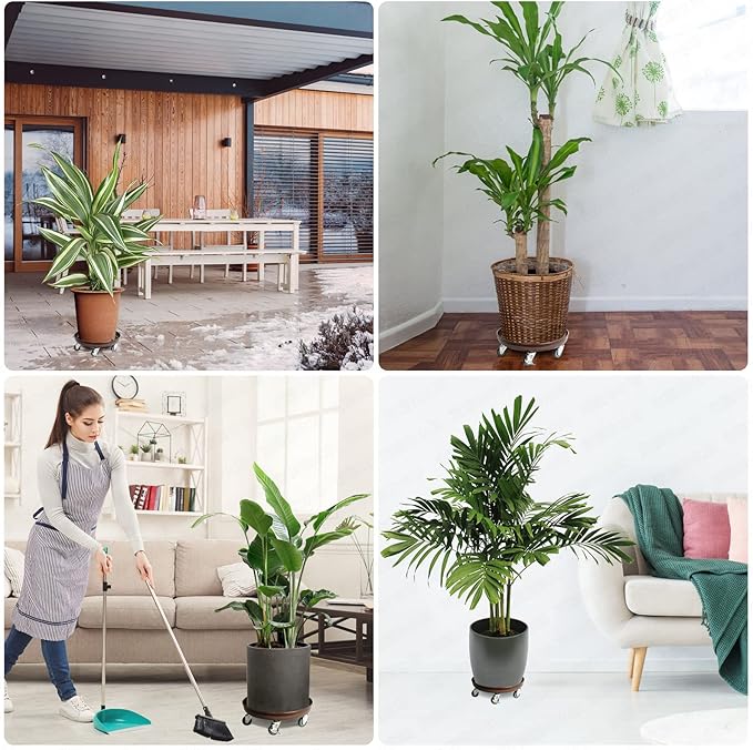 - MULTI PURPOSE & EASY INSTALLATION: Our plant stand with wheels are suitable for indoor and outdoor; it can not only place your flowerpot, but also bear many kinds of heavy objects, such as laundry baskets, all kinds of household appliances, wine barrels, etc., which is convenient for you to move when doing some cleannings; it only takes 1 minute to install and screw the wheel to use.