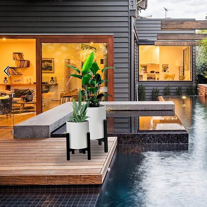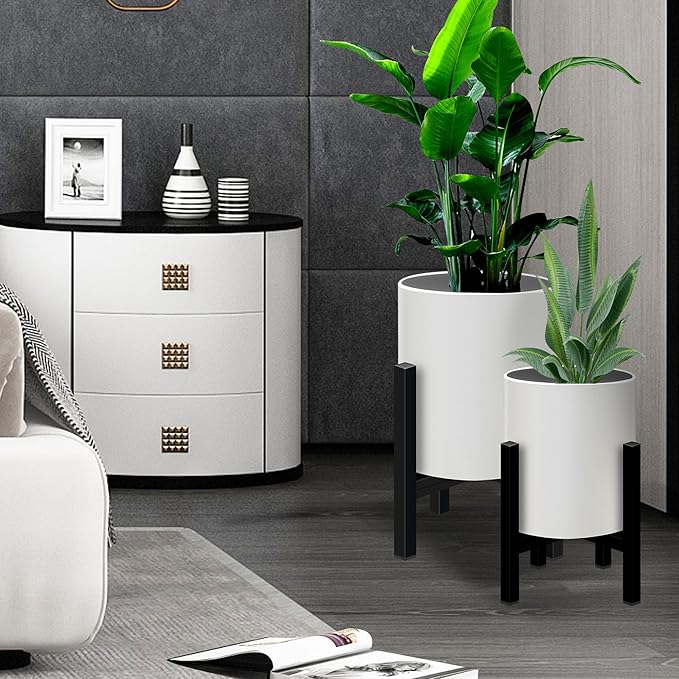 Plant Pot with Stands Set of 2, Mid Century Planters for Indoor Plants Modern Decorative Flower Pots for Balcony, Office, Living Room or Garden with Drainage Plug, 12 inch & 10 inch