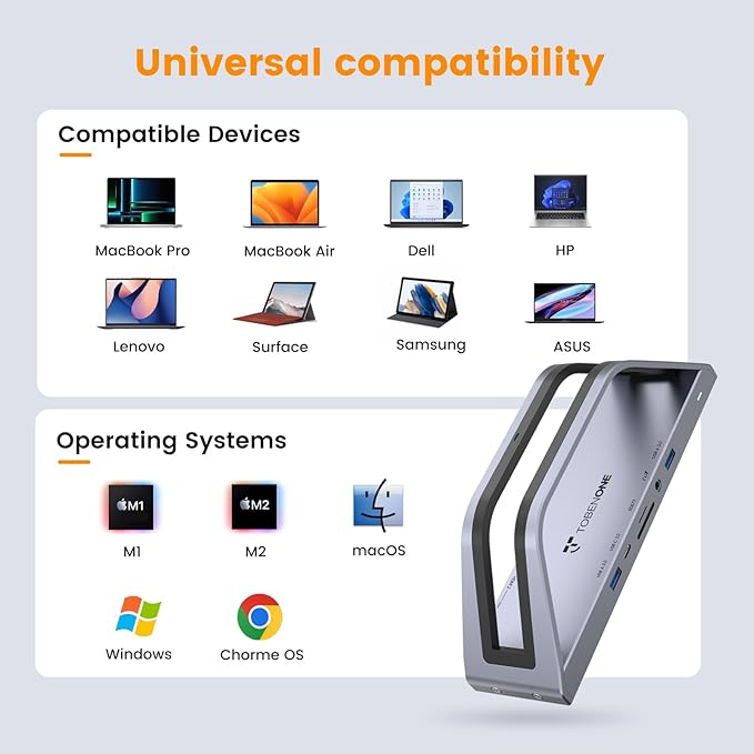 - Compatible Devices : MacBook Pro/Air with M1/M2/M3/M4, M1/M2/M3/M4 Pro/Max, Intel chip; Mac mini M1, M2/M2 Pro, M4/M4 Pro; Dell, HP, Lenovo, Suface, ASUS, Samsung, Windows & ChromeOS laptop with full-featured USB C/ Thunderbolt 5/ Thunderbolt 4/ Thunderbolt 3/ USB 4.0 ports MacBook Pro/Air with M1/M2/M3/M4, M1/M2/M3/M4 Pro/Max, Intel chip; Mac mini M1, M2/M2 Pro, M4/M4 Pro; Dell, HP, Lenovo, Suface, ASUS, Samsung, Windows & ChromeOS laptop with full-fe… See more