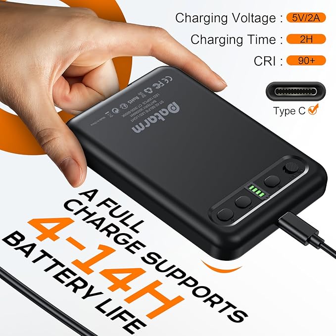 - [Built-in Rechargeable Battery] This light for phone can be charged by most devices that support USB ports or Type-C ports. With its built-in high-capacity rechargeable battery, selfie light can be easily fully charged in 3 hours, and can operate for 4-14 hours all the time. With an extended battery life, you can enjoy the joy of taking selfies anytime and anywhere without worrying about running out of power.