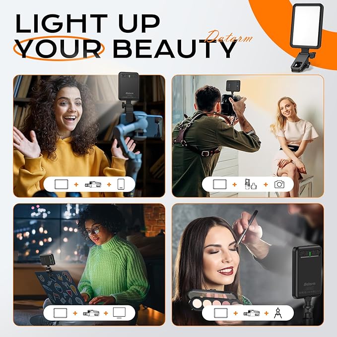 - [Universal Compatibility] This portable led light will illuminate you and showcase your best self with perfect enchanting lighting. It is compatible with phones, iPads, laptops, cameras, and tripods. As a versatile light for pictures, it is ideal for selfies, video references, TikTok, or shooting video blogs for your YouTube channel.