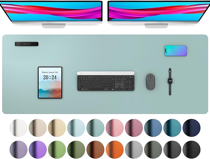 Aothia Leather Desk Pad Protector, Mouse Pad, Office Desk Mat, Non-Slip PU Leather Desk Blotter, Laptop Desk Pad, Waterproof Desk Writing Pad for Office and Home (48"x17", Light Blue)