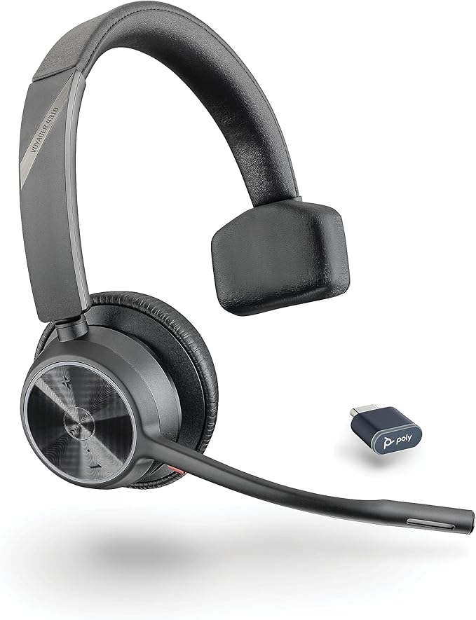 Poly Voyager 4310 UC Wireless Headset (Plantronics) - Single-Ear Bluetooth Headset w/Noise-Canceling Mic - Connect PC/Mac/Mobile via Bluetooth - Works w/Teams, Zoom, & More - Amazon Exclusive