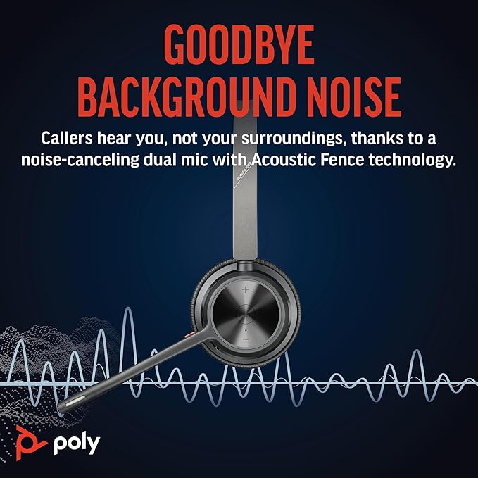 Poly Voyager 4320 UC Wireless Headset & Charge Stand (Plantronics) - Stereo Headphones w/Noise-Canceling Boom Mic - Connect PC/Mac/Mobile via Bluetooth - Works w/Teams, Zoom, & More - Amazon Exclusive