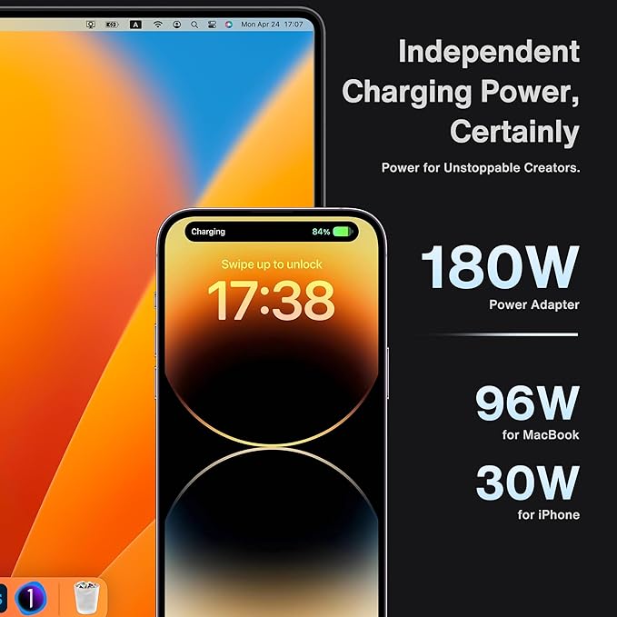 - 【Full Speed Charging】This dock features a 180W power adapter, enabling efficient charging of laptops up to 96W and PD USB-C devices up to 20W