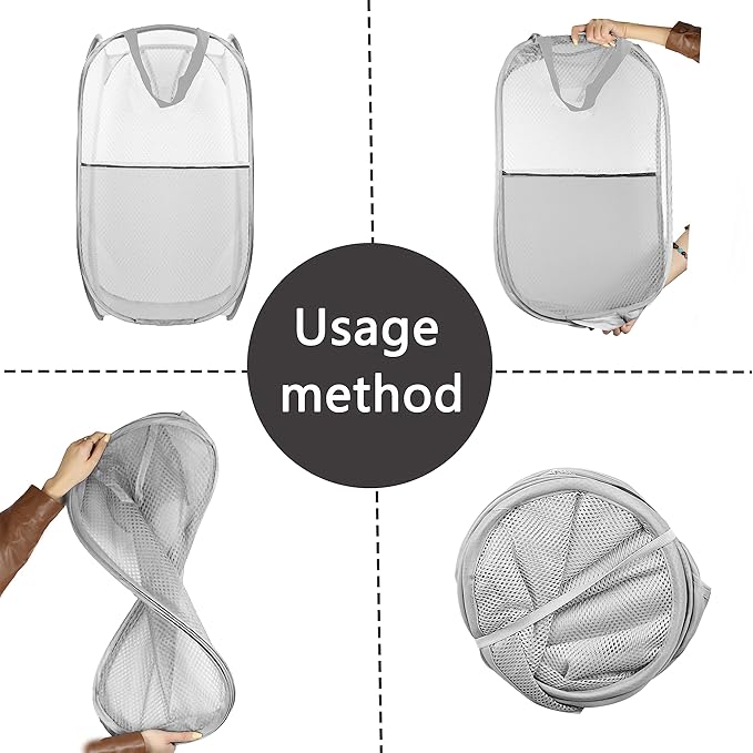 Collapsible Pop Up Laundry Hamper, Extra Large Mesh Foldable Laundry Basket, 28" x 16" x 16", 2 Pack (Black + Grey)