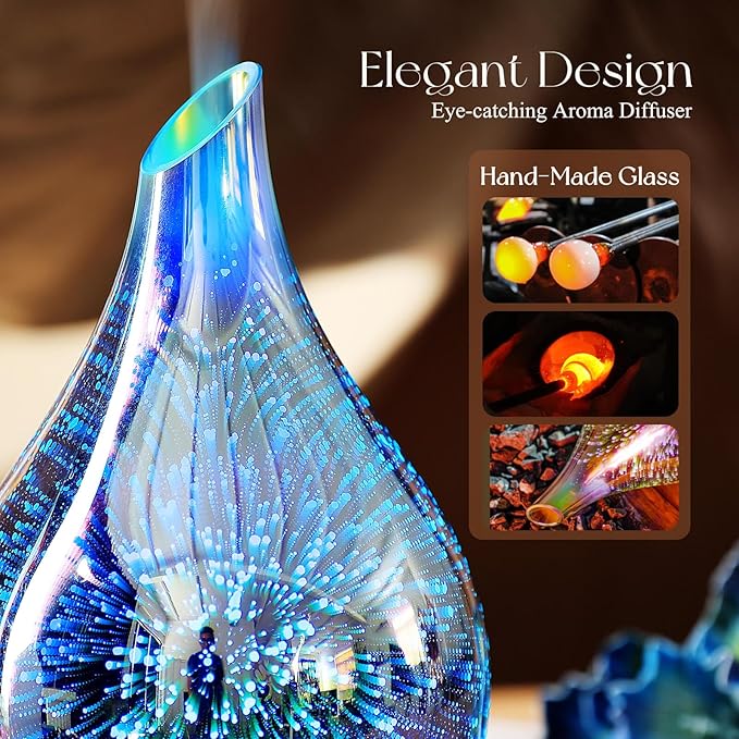 - ELEGANT GIFT IDEA - This diffuser humidifier use special handmade 3d glass craft,if you are looking for a unique gift,this 3d essential oil diffuser will make a great surprise for your friends or lovers in Christmas,Birthday and Thanksgiving! No matter in spring, summer, autumn or winter time, this will be your best gift to say thank you!
