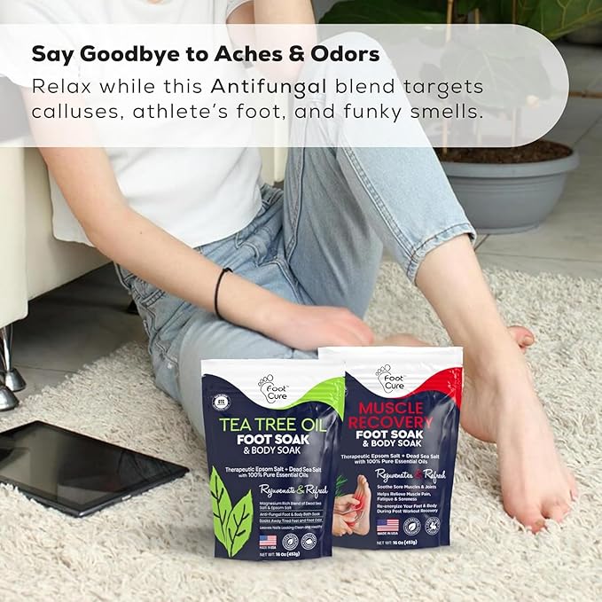 - GET SOFTER, BEAUTIFUL FEET & TOENAILS: This Epsom salt bath soak can also be used for a soothing hot tub experience. Foot Cure Lavender Oil foot soak with Epsom salts is crafted to be gentle and skin-friendly. Suitable for men and women of all ages, it is safe even for the most sensitive skin types.