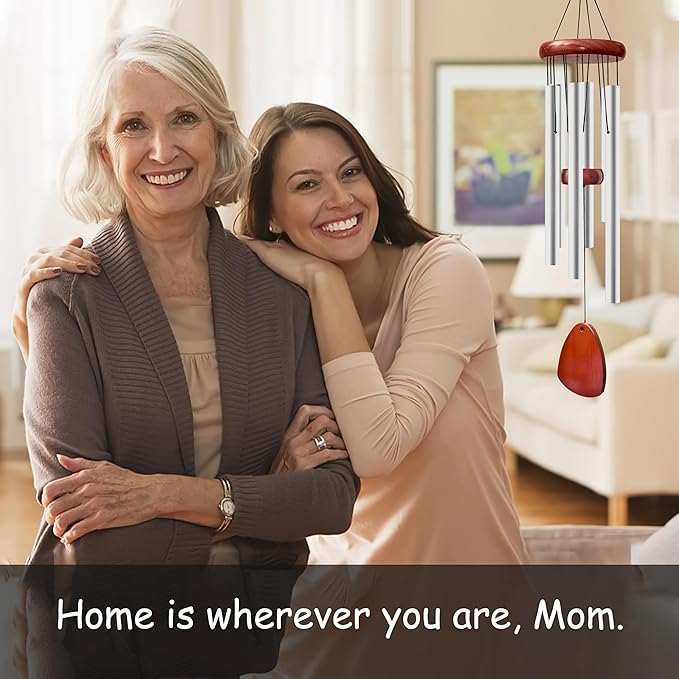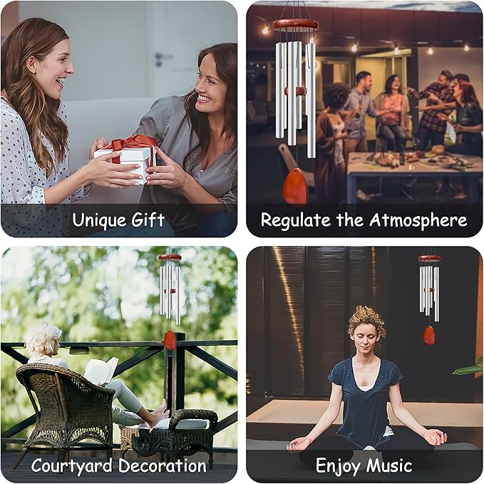28" Wind Chimes for Outside. Deep Tone Lovely Wind Chimes with 6 Aluminum Tubes Courtyard Decoration. Windchimes Outdoor Create an Enjoyable Atmosphere & Give Mom a Gift(Silver)