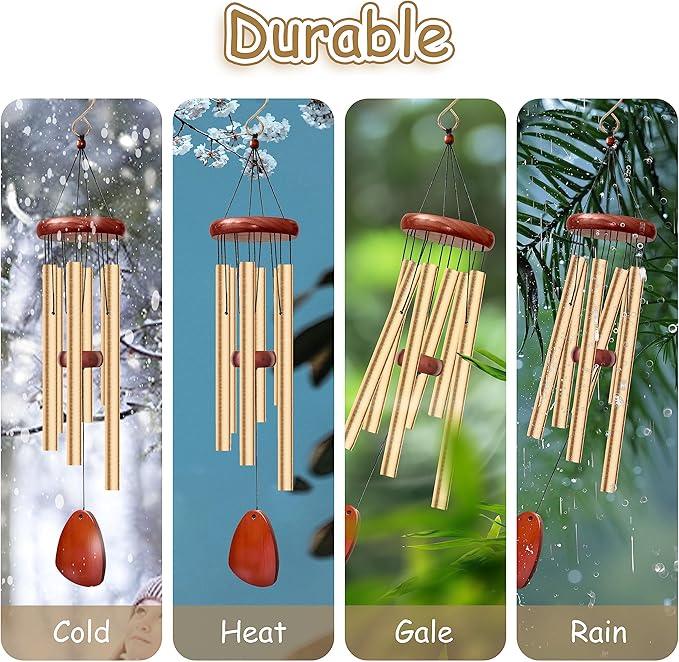 28" Wind Chimes for Outside. Deep Tone Lovely Wind Chimes with 6 Aluminum Tubes Courtyard Decoration. Windchimes Outdoor Create an Enjoyable Atmosphere & Give Mom a Gift(Gold)
