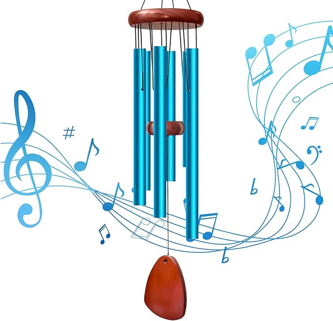 28" Wind Chimes for Outside. Deep Tone Lovely Wind Chimes with 6 Aluminum Tubes Courtyard Decoration. Windchimes Outdoor Create an Enjoyable Atmosphere & Give Mom a Gift(Blue)