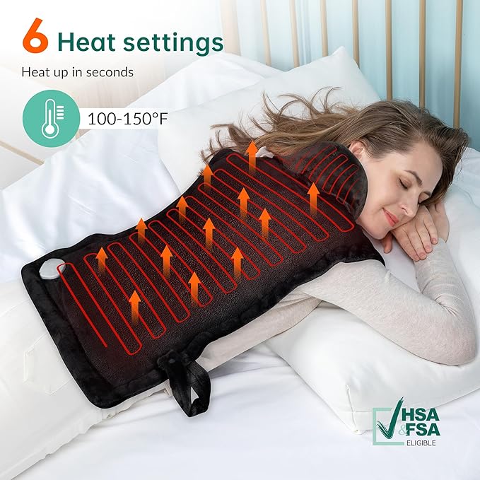 - Fast Heating & Auto Shut Off: Snailax Electric heat pads warm up quickly in seconds. Heating Pads for Neck and Shoulders have 6 heating settings(ranging from 100°F-150°F) to meet different needs,120Mins Auto shut off function and overheating protection system ensures safety and saves energy.