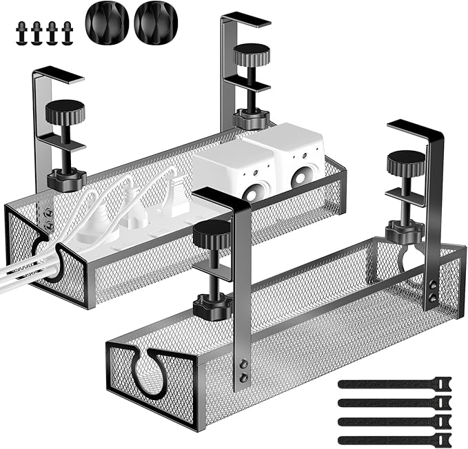 - ใ๐พ๐๐๐ ๐๐๐ ๐ฎ๐๐ใThe desk cable management under desk kit includes 2 cable tray, 4 cable clips, and 10 zip ties. This cord organizer is not only suitable for your office desk but also for use in the kitchen and outdoors. Keep your office and home neat and beautified.