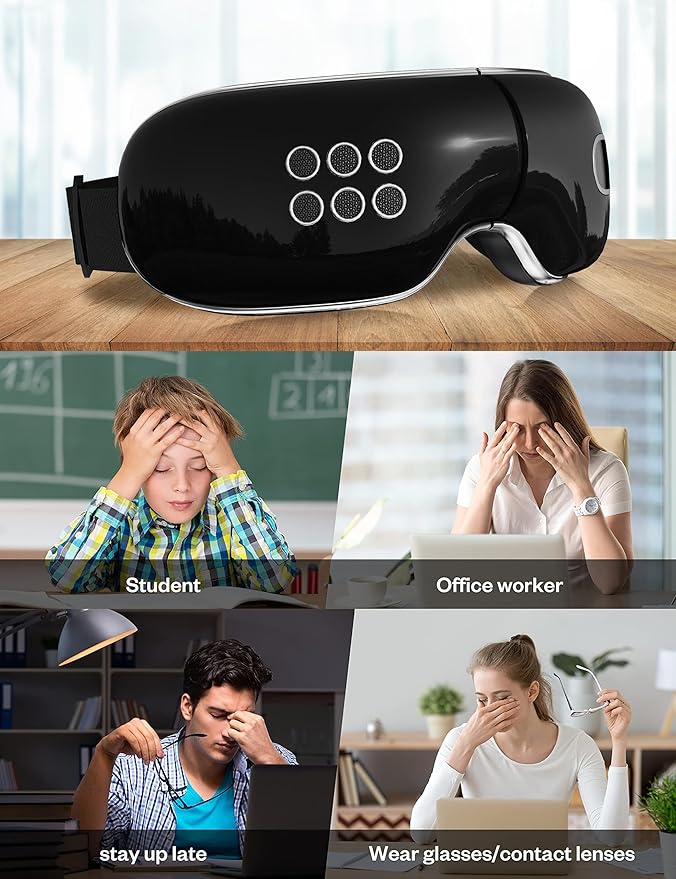 - 【Air Compression Massage】 The eye massager for dry eyes machine massaging eyes and temples with scientifically proven warmth acupoint and compression across forehead and face making it an ideal eye strain relief and eye relaxation massager for people of all ages.